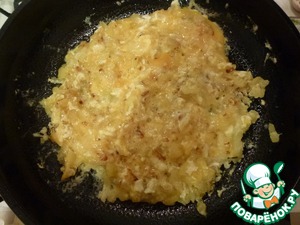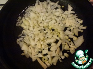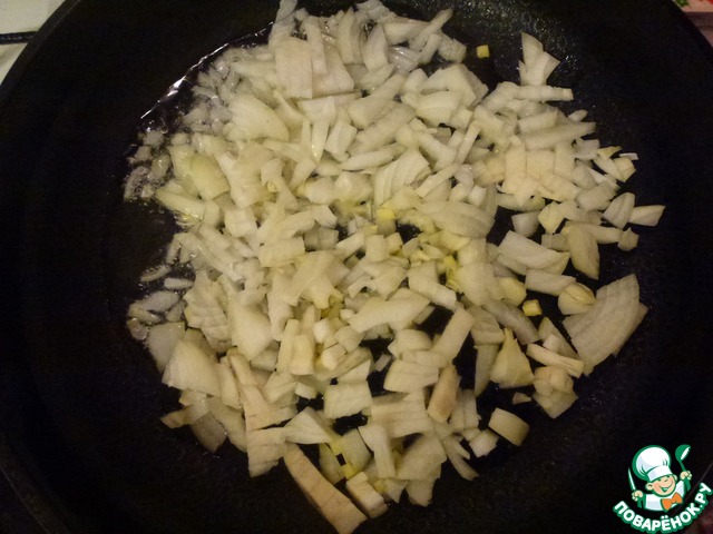 Для начинки: Лук мелко порезать и обжарить в небольшом количестве масла до золотистого цвета.
