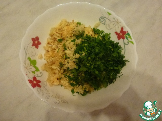 - Яйцо куриное (3 в начинку, 1 в фарш) — 4 шт