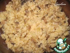 Пшеничную крупу отварить в подсоленной воде и смешать с грибами.