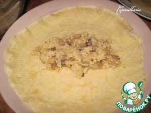 Порцию начинки выложить на блинчик и завернуть трубочкой.