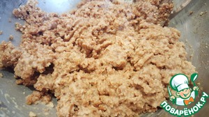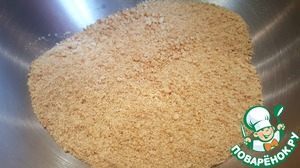 Смешать крошку печенья с варёной сгущёнкой. У меня была варёнка - вид жидкой варёной сгущёнки.