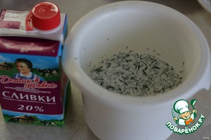 Готовим подливку. Добавляем в сливки порезанный укроп и петрушку (готовила и с одним из составляющих - тоже вкусно)