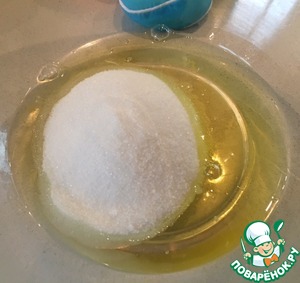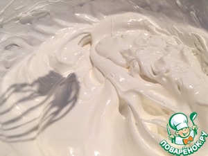 Белки взбейте с сахаром. Добавьте 100 гр сахара.