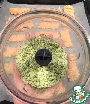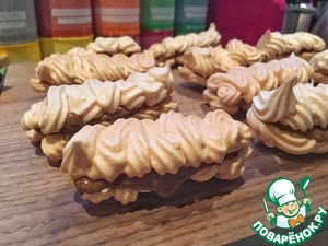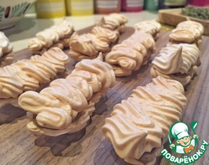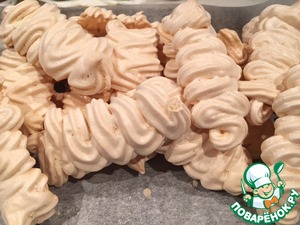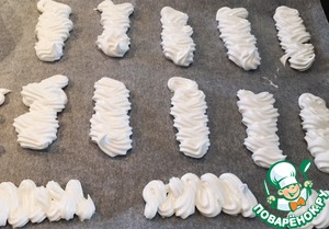 Переложите в кондитерский мешок и отсадите на пекарскую бумагу. У меня получилось 2 противня.
