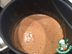 Уварите на водяной бане, помешивая венчиком. Получится тягучий кофейно-шоколадно-мя тный ' крем'.