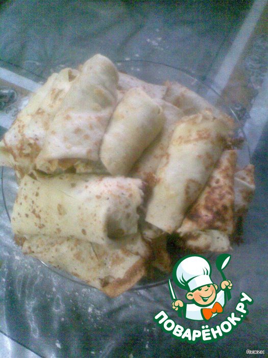 А теперь мой самый любимый этап - заворачивание фарша в блинчики.