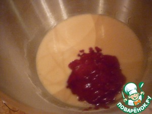 БОльшую часть малины взбить блендером и перетереть через сито (впрочем, если Вам малиновые косточки не напрягают, то можно не перетирать) и добавить к тесту.