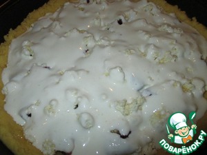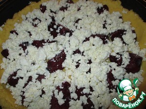 На основу пирога выложить сливы, нарезанные четвертинками (я положила прямо замороженные)Сверху выложить творог (у меня по рецепту Violl http://www.povarenok .ru/recipes/show/863 49/ )Очень важный момент-творог не должен быть кислым, а творог по этому рецепту как раз такой, как нужно.