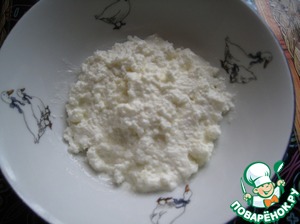 Смешиваем творог со сметаной и сахаром. Тонко нарезаем курагу.