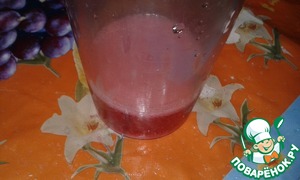 Сначала разморозим вишню. Выделившийся сок отправим в стакан и добавим молоко до отметки 200 мл