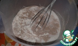 Отдельно смешать просеянную муку, сахар, какао и соду.