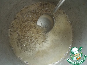 В горячий мед добавим взбитое яйцо и непрерывно мешаем, пока не закипит наш соус. Снимаем с огня. Соус готов.