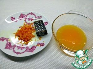 Апельсины вымыть хорошо с щеткой. Снять цедру с апельсинов, выжать сок.