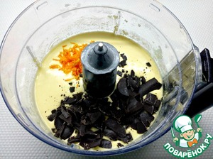 Добавить в тесто рубленный шоколад и цедру апельсина. Перемешать.