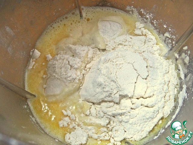 • Готовим тесто как в предыдущем рецепте. Нужно топлёное масло.