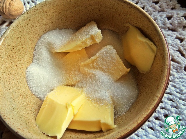 • Растереть мягкое масло с сахаром, лучше мелким.