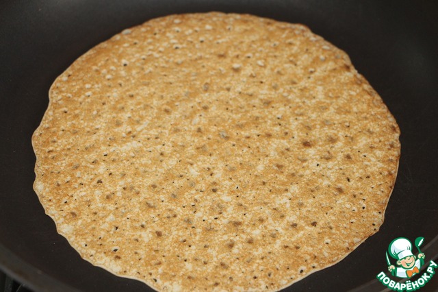 Выпечь блинчики с каждой стороны до светло коричневого цвета