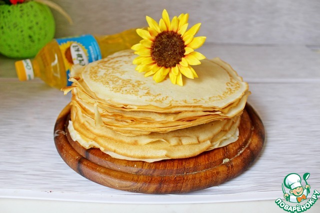 Приготовить блины по вашему рецепту с использованием растительного масла Олейна.