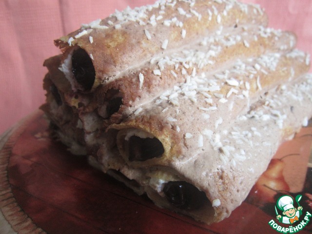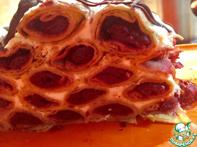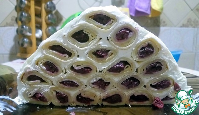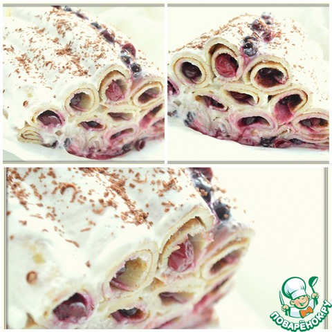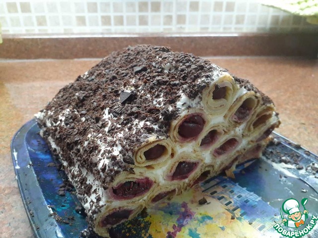 Блинный торт с вишней или как у нас в Молдове называют этот десерт — «Шапка Гугуцэ». «Шапка Гугуцэ» это наша национальная сказка, про мальчика, которому папа сшил очень большую шапку и шапка постоянно спадала у него. — Она падает на глаза, отец. — А ты подымай её, Гугуцэ. Вот и найдётся у тебя дело на всю зиму». Ну вот как так начинается сказка... А теперь о десерте, нет ни одного застолья, у нас в Молдове, где бы на десерт ни подавали этот блинный торт. Готовится практически на все праздники, особенно в деревнях... Этот тортик очень вкусный! Любят его и детки, и взрослые. Крем чаще готовится из домашней густой сметаны, но можно и заменить жирными сливками. Вишню мы используем консервированную (можно мороженную но дать ей растаять или свежую). Я помню как моя мама, бабушка, да и почти в каждой семье, у нас хозяйки с лета заготавливают вишню в собственном соку, без косточки, именно для этого тортика. Еще один рецепт из нашей семейной копилочки.