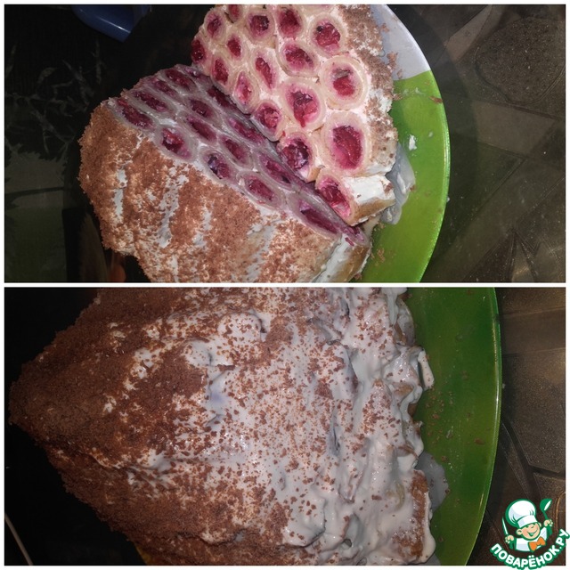 Вынуть с холодильника и украсить по вашему желанию. Я полила шоколадом.
