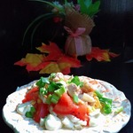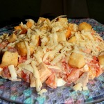 [+5]Салат получился вкусный, сочетания продуктов отличное и сухарики очень хорошо вписались. Готовила с куриной грудкой, сухарики делала сама.