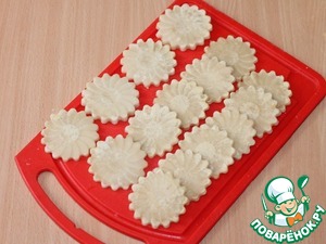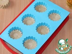 2. Разогреваем духовку до 220-250 С. Приготовьте формочки для выпечки. Смазывать маслом формочки не надо, масла достаточно в тесте. Налейте в формочки по 1 ст. л. теста и поставьте выпекать в хорошо разогретую духовку на 3 минуты. Золотистых корочек не будет. Можно проверить выпечку на сухую спичку.