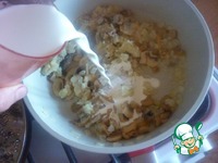 Добавить нарезанные грибы, посолить, поперчить и обжаривать ещё 5 минут. |