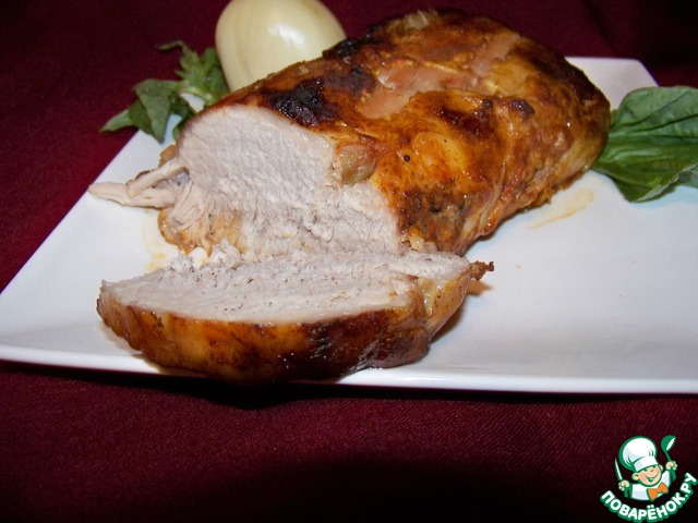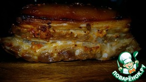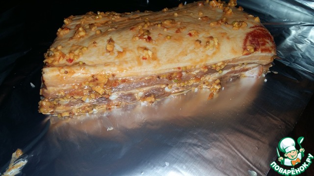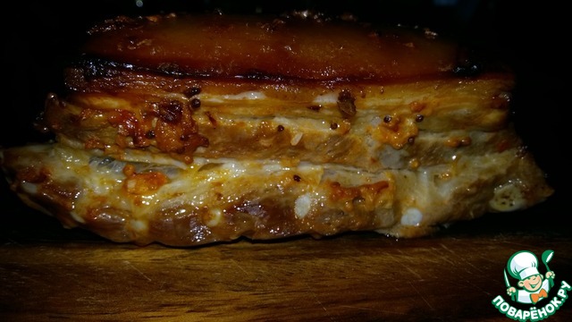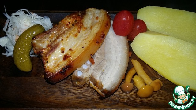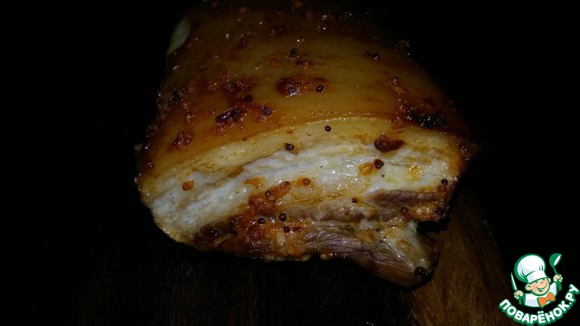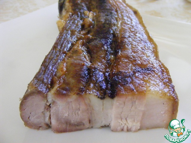 Сочная и ароматная свиная грудинка. Можно употреблять как горячее блюдо, но не менее вкусна и как холодная закуска.