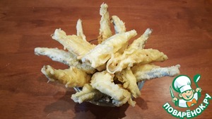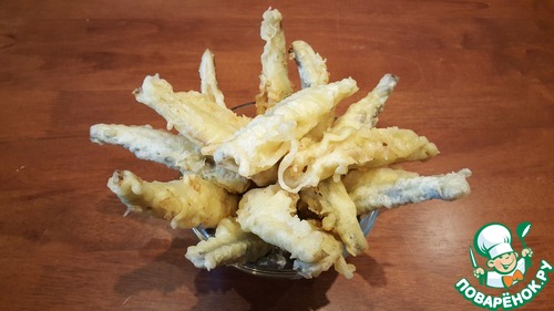 Нагреваем масло. Температура жарки около 170*. Окунаем рыбку в кляр и жарим в масле переворачивая по несколько минут с каждой стороны.
