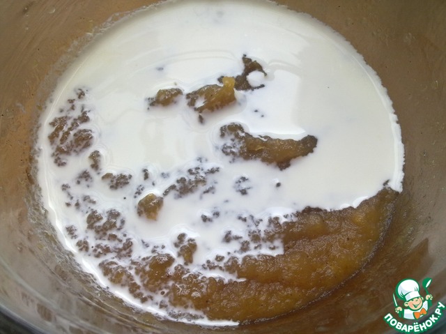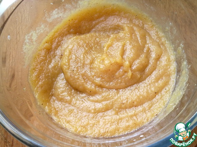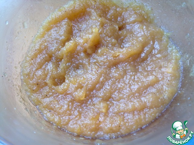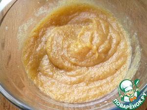 У меня яблоки были не очень сочные, сейчас же не сезон и из них пюре не получилось. Поэтому мне пришлось приготовленные яблоки пюрировать блендером.