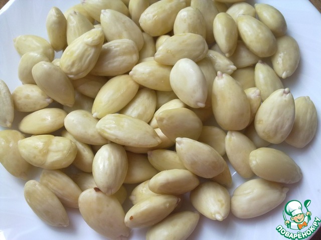 Нам нужна миндальная крошка, для этого - целый миндаль, сначала бланшируем в кипящей воде минуты две.