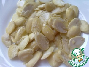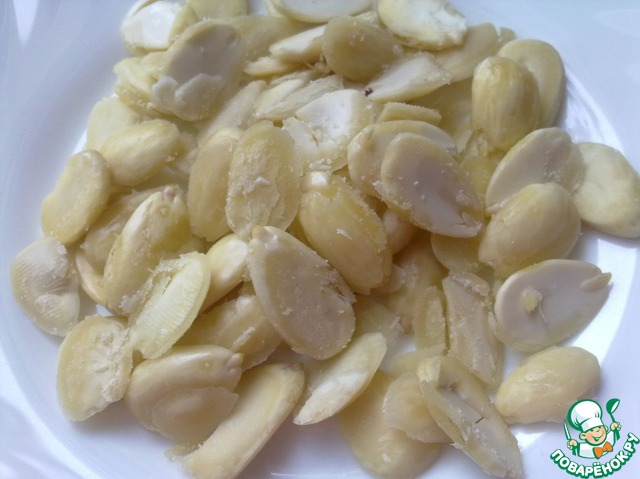 2 ст. л. миндаля нарезаем тонкими ломтиками.