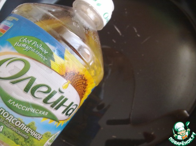 Берем сковороду наливаем 1 ст. л. подсолнечного масла "Олейна"