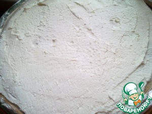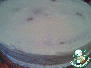 7. Бока торта тоже смазать творожной начинкой. Поставить торт в холодильник на 2 часа.