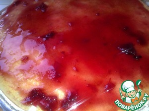 8. Приготовить вишневое желе согласно инструкции на упаковке. Залить желе торт.