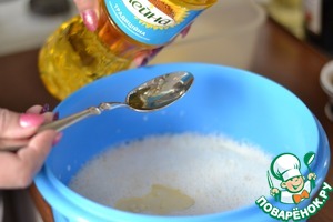 Добавить муку, соль, подсолнечное масло "Олейна". Взбить. -