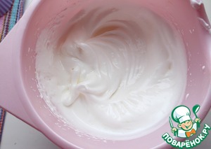 Белки взбить с 25 г сахара до "твердых" пиков.