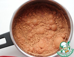 Шоколад поломать на небольшие кусочки и переложить в кастрюлю. Добавить газированную воду (не обязательно брать минеральную, но она придает особую нотку), какао и сахар.