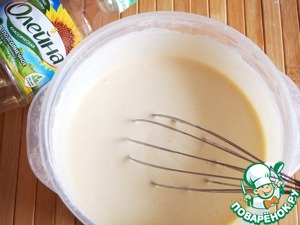 Затем добавить подсолнечное масло и снова хорошо перемешать. Оставить тесто на 15 минут, чтобы пошла реакция кефира с содой.