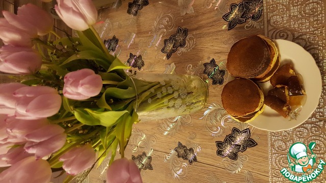 Подавать с Вашим любимым соусом; с медом, сметаной, вареньем и т. п.