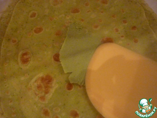 Зелёный блин намазать васаби и свернут трубочкой. -