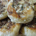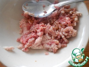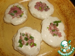Сверху выложить по 1-2 ч. л. мясной начинки.
