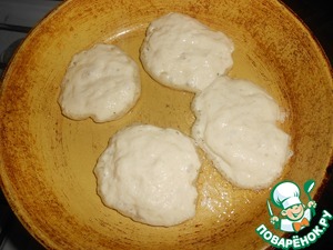 Разогреть на сковороде растительное масло Олейна, выкладывать столовой ложкой оладьи.