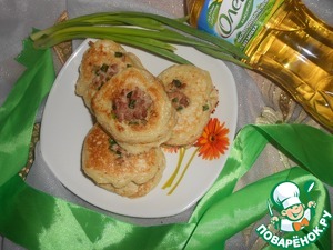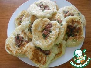 Оладьи или блины с припеком-одно из оригинальных блюд русской кухни. Для припека можно использовать любые продукты-мясной фарш, ветчину, грибы, курицу, сыр, креветки.
