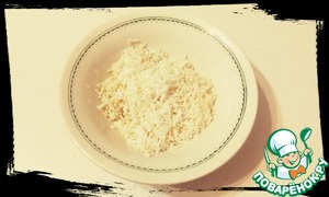 Попутно будем заниматься приготовлением начинки. Окорочок сварить в подсоленной воде, остудить, отделить от кости и пропустить через мясорубку.