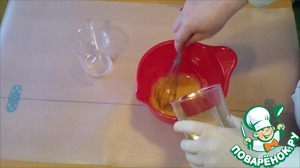 • Понемногу, небольшими порциями наливаем растительное масло и перемешиваем.