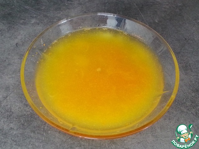 Счищаем с апельсина цедру, выжимаем сок. У меня вышло 70мл сока. Доливаем воды, чтобы в сумме вышло 140 мл.