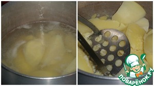 Варим картофель до готовности. Делаем пюре, добавив сливки.