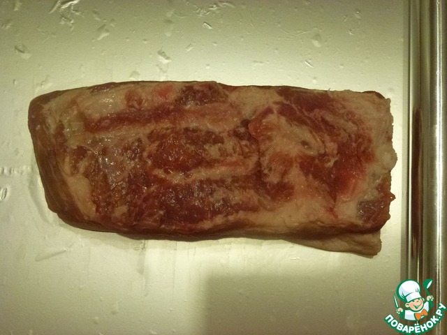 Развернуть. Вот так наша грудинка выглядит с наружи.