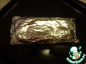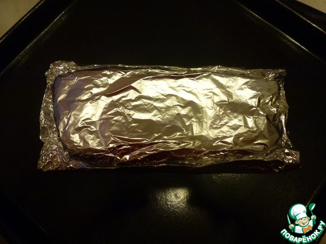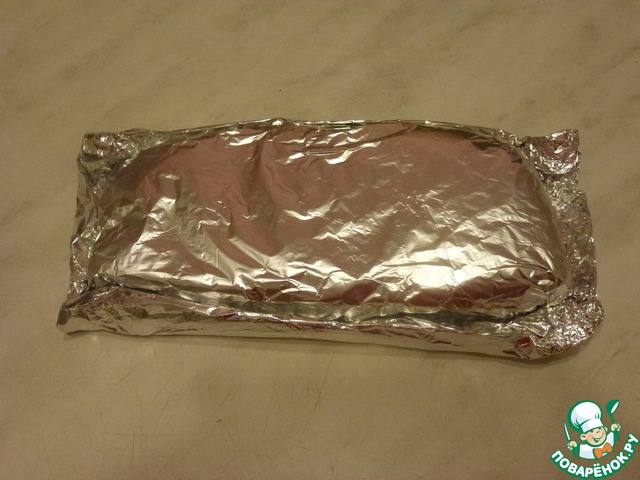 Обмотать грудинку фольгой и оставить мариноваться в таком виде на 5-8 часов ( лучше на ночь), чем дольше тем вкуснее.